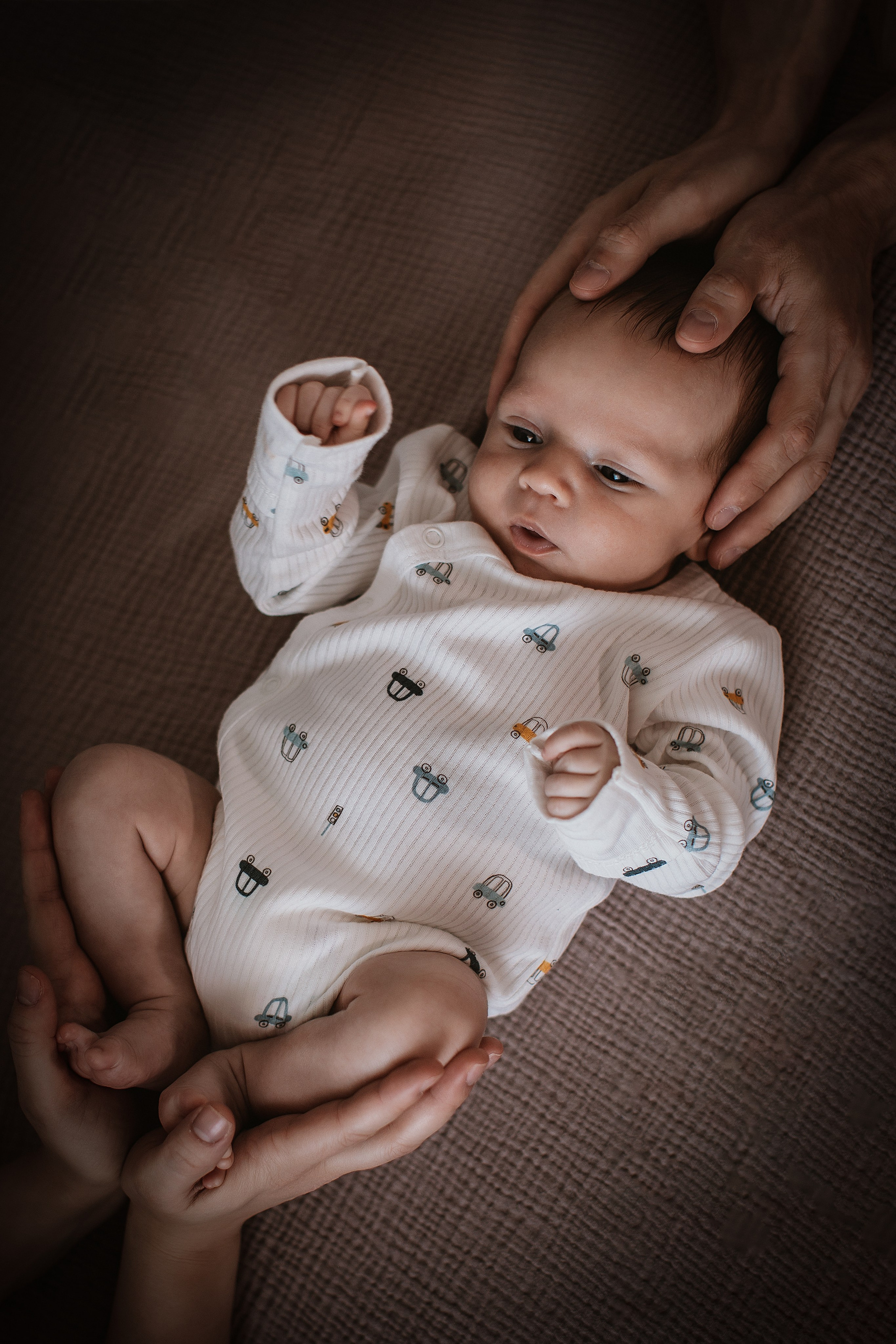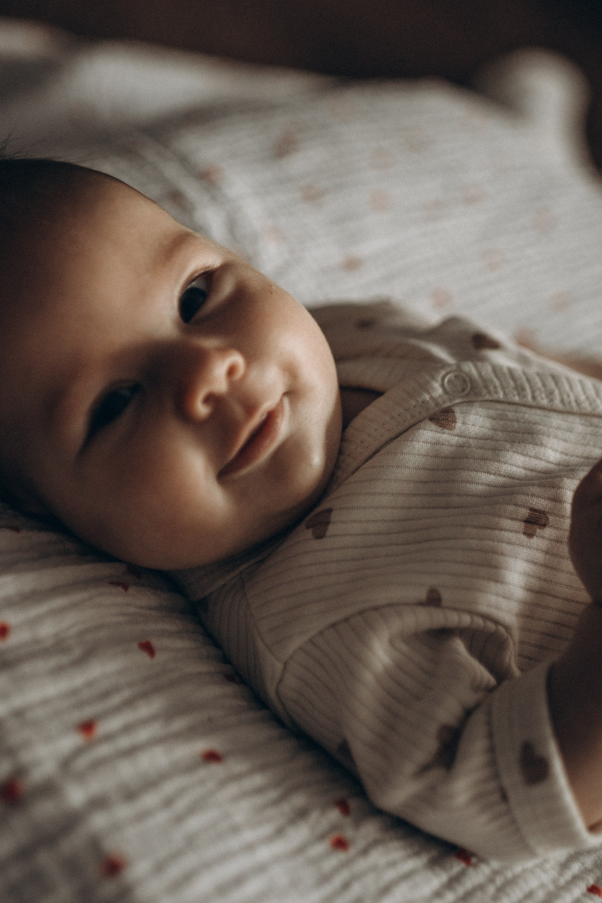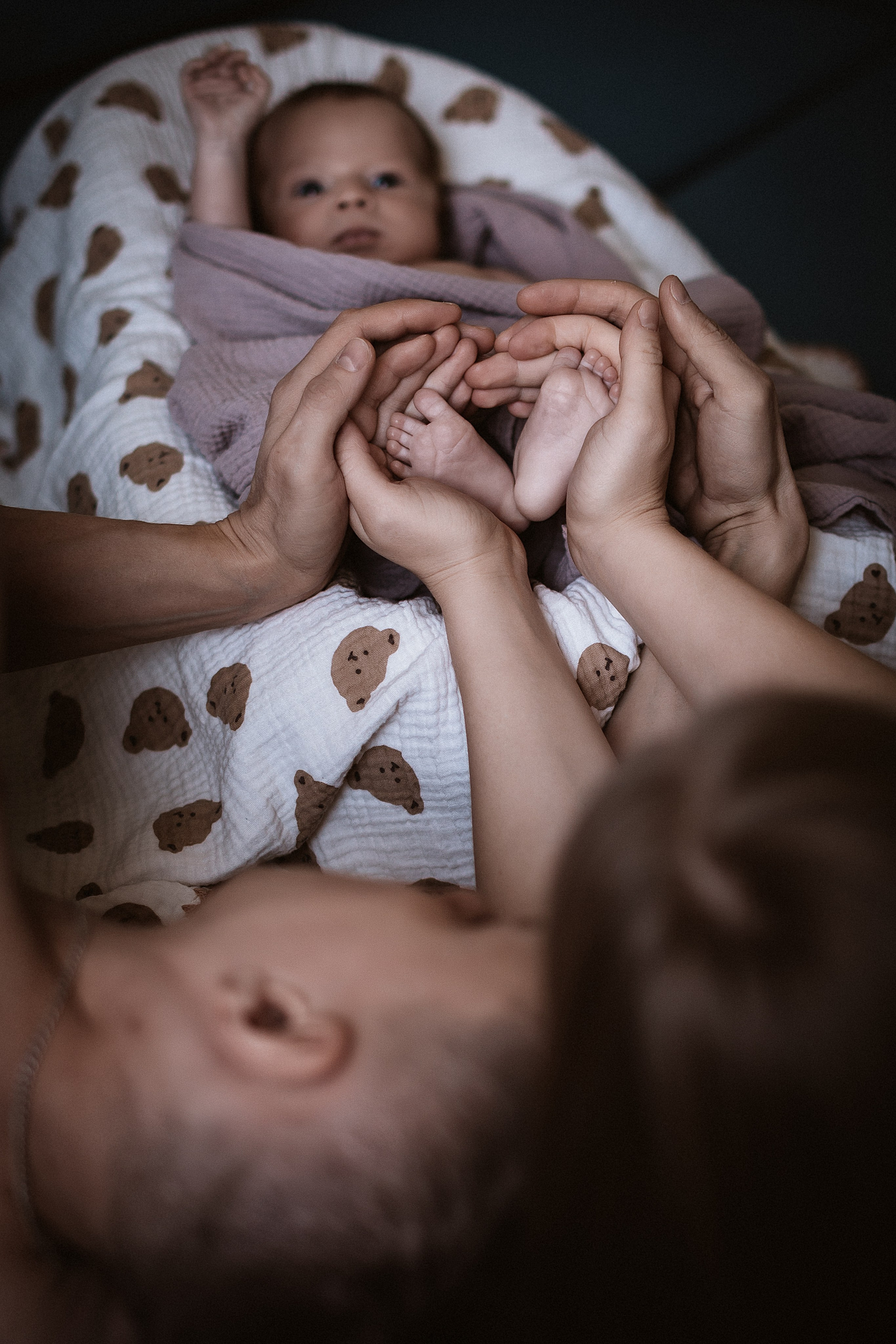 Фотосессия новорождённого дома — лучший выбор для вас и малыша! В привычной обстановке кроха чувствует себя спокойно и комфортно: знакомые звуки, запахи и тепло родного дома помогают ему оставаться расслабленным. Благодаря этому мы получим самые ценные кадры — искренние, нежные и живые: сладкие зевки, первые улыбки, умиротворённый взгляд.